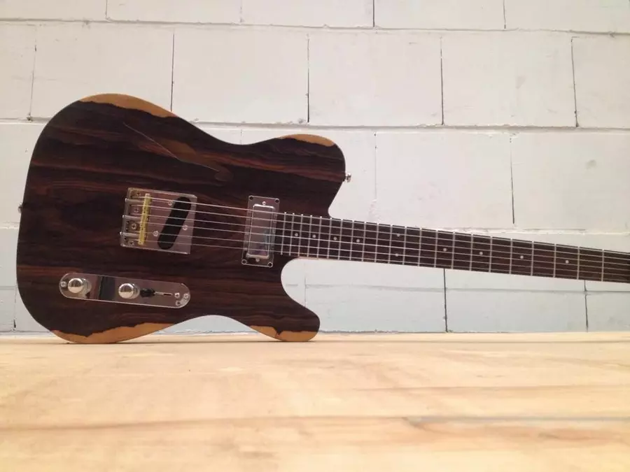 Mijn eerste gitaar bouwde ik in de schuur van m’n ouders. Van een stuk hout knutselde ik met bijeen geraapt timmergereedschap een instrument in elkaar dat weliswaar handmade was, maar daarmee nog niet per se een collectors item. Vijf jaar lang bouwde ik stug door, tot ik in 2003 besloot les te nemen bij gerenommeerde gitaarbouwers in Engeland en Amerika. Wat volgde, was een stage bij de Galloup school of guitar making in Amerika en in 2009 een aanstelling als gitaarbouwer bij Patrick James Eggle in Engeland, waar ik tot begin 2013 gitaren bouwde voor gitaristen als Frank Turner, Dave Hill (Slade) en Gareth Pearson. Inmiddels weet ik hoe een gitaar in elkaar steekt, hoe kammetjes het best worden geveild en fretjes gevlakt,