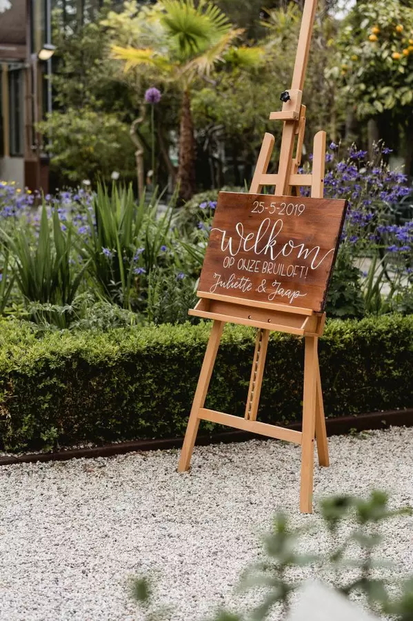 Welkomstbord met handgeschreven tekst